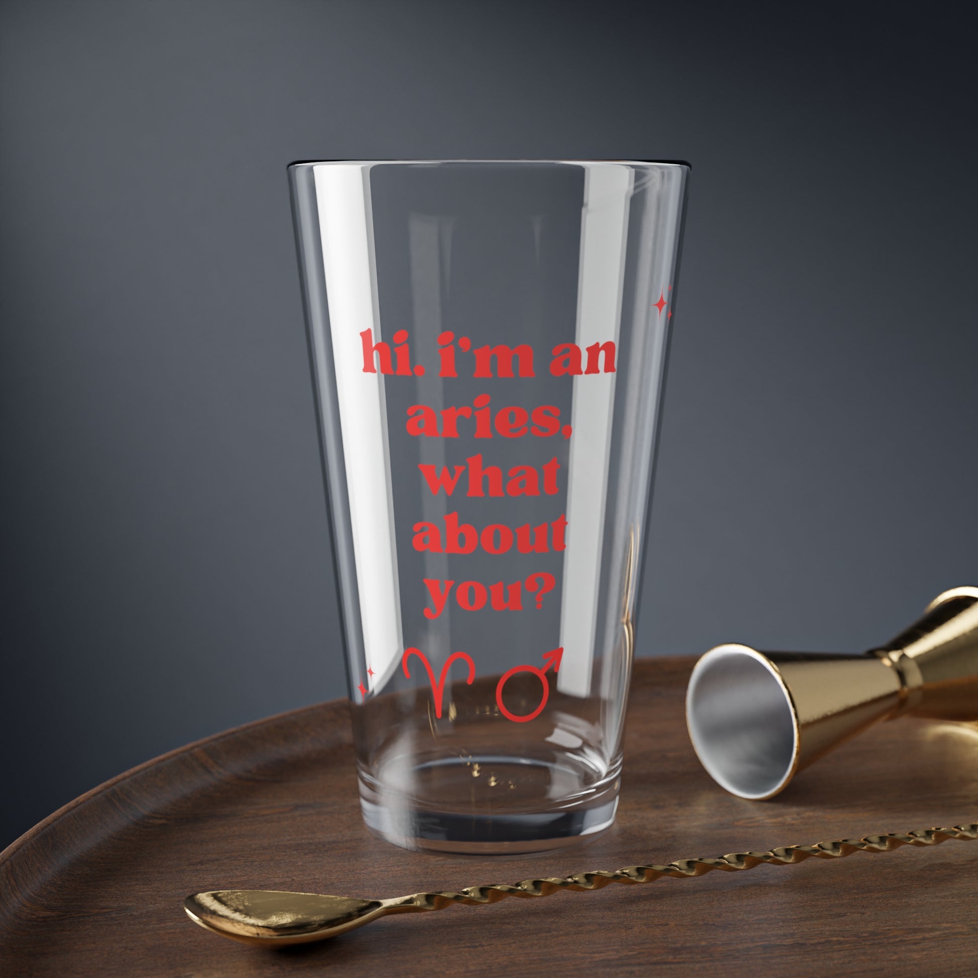 Equal parts sleek and sturdy, this doubles as both a mixing glass and an everyday drinking glass. The solid base helps prevent spills, while the tapered shape makes it comfortable to hold and easy to carry. A simple, practical piece that brings Aries energy to your daily drink.